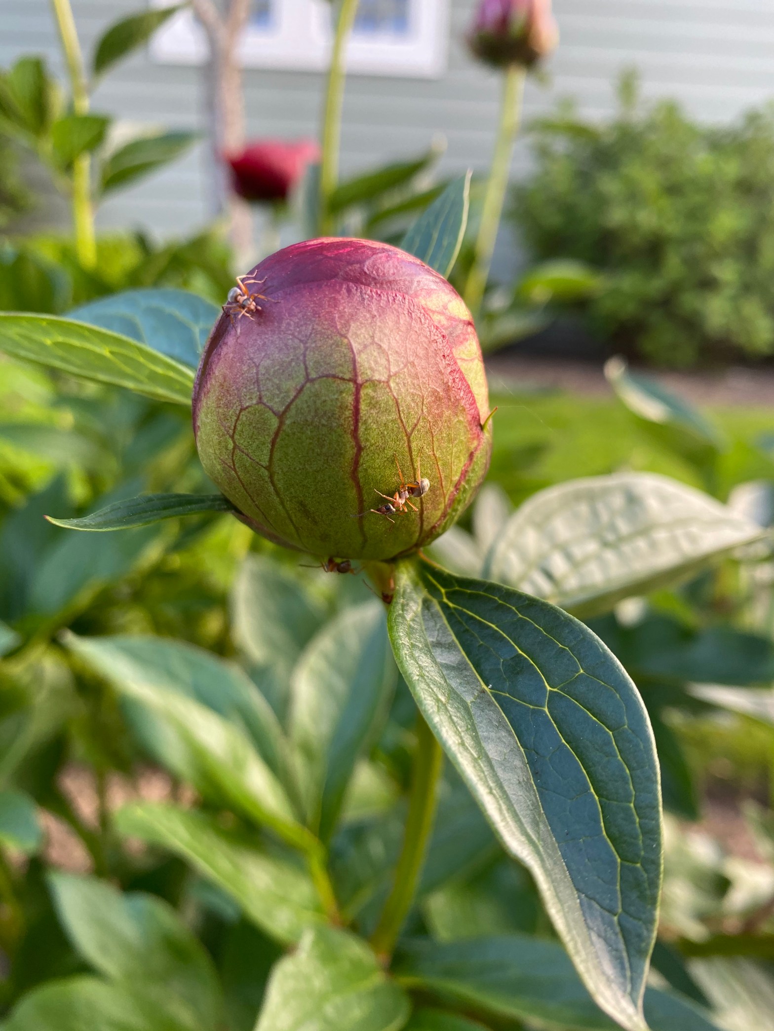 The cover is smooth and elegant, the size, a perfect fit in the small black bag of notecards I had just purchased from a local artist’s collective. I opened to the first poem and laughed in delight, then felt horror at the next, then delight again. Here are two of my favorite so far, and a picture of clever ants sojourning on a flower bud at evening time: